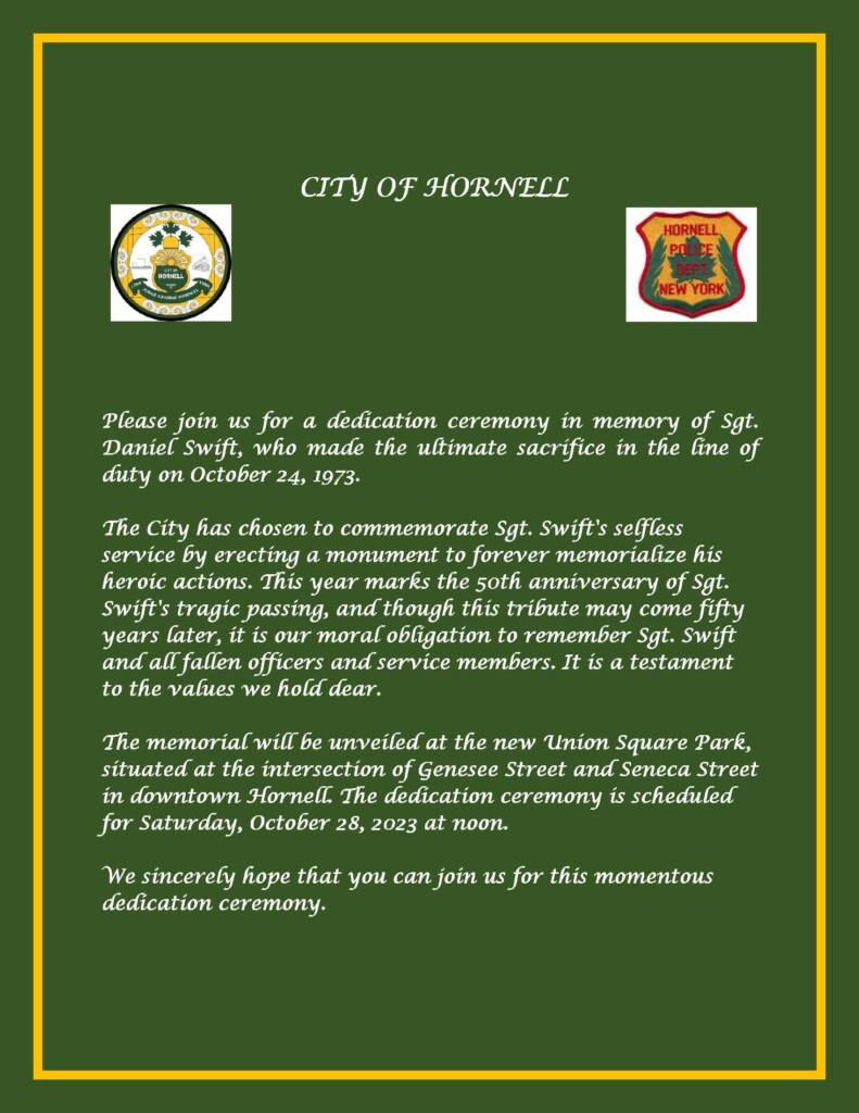 Dedication Ceremony Coming Up, For Sgt. Dan Swift Memorial