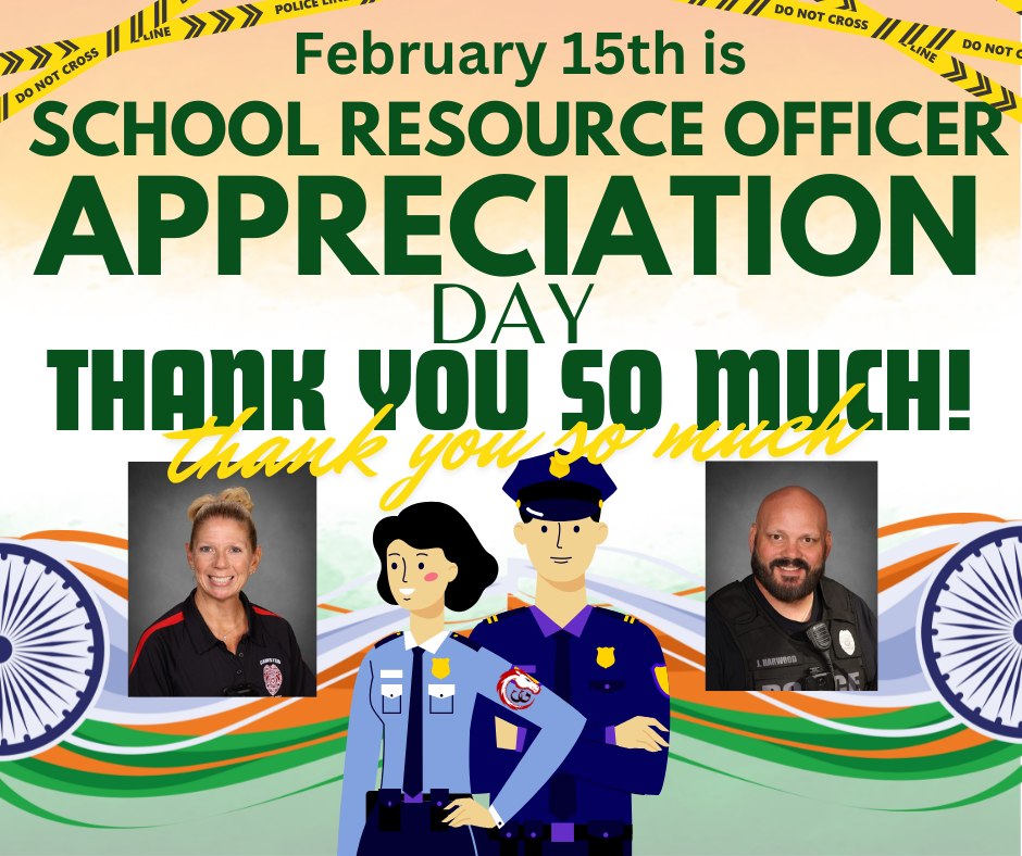 FROM CG CENTRAL: Today is National SRO Day! Thank you to Officer Kate Secondo and Officer Jamie Harwood for making our school and community a safer place to enjoy! CG appreciates all you do!