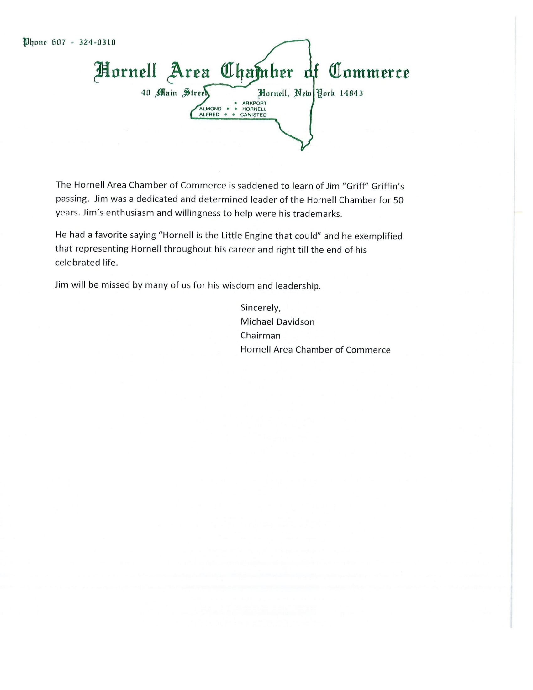 Hornell Chamber Of Commerce: Statement On The Passing Of Jim Griffin