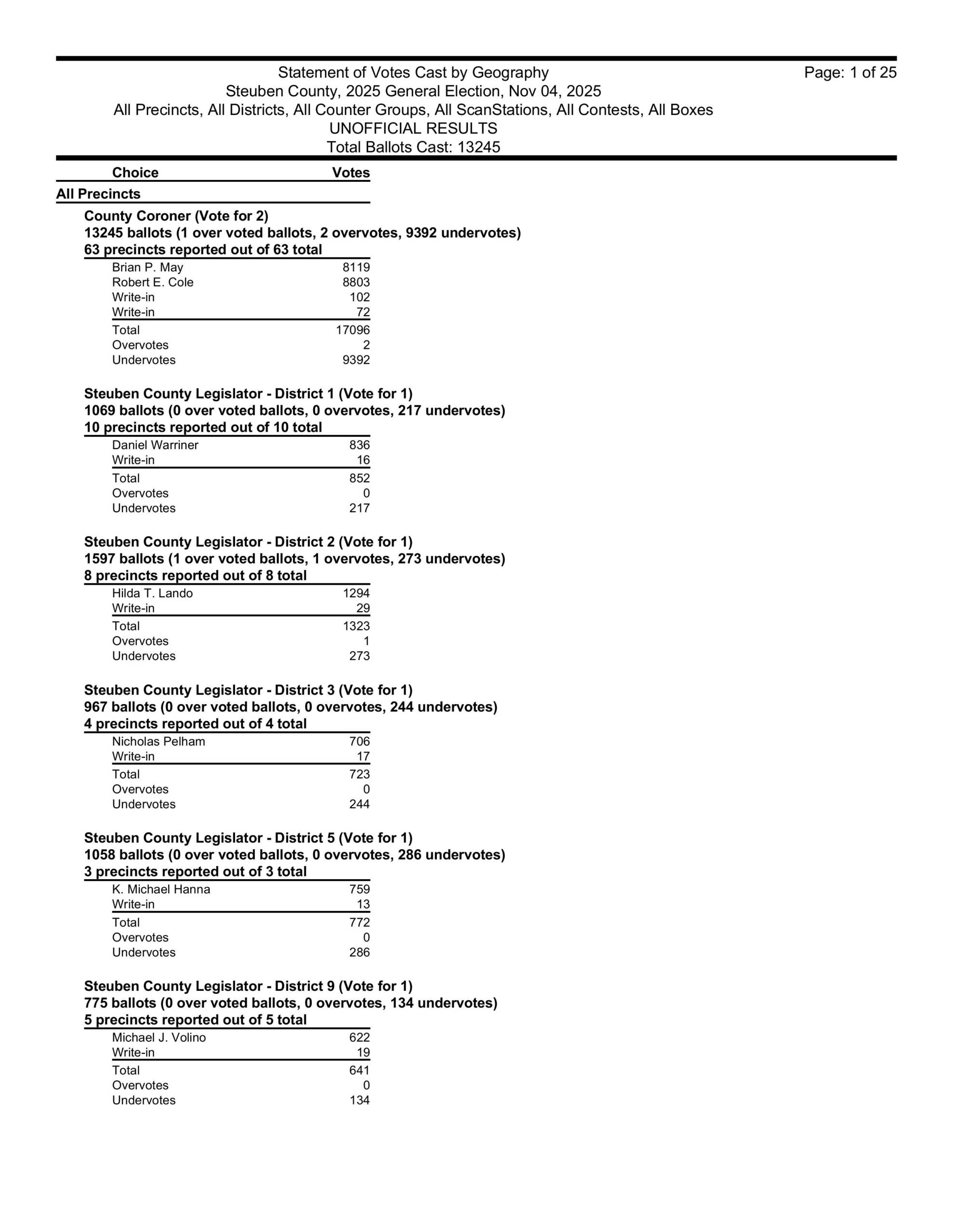 FROM THE STEUBEN COUNTY BOARD OF ELECTIONS: